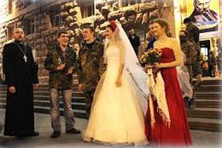 06.02.2014 // 10:39 На Майдане отгуляли первую революционную свадьбу В колонном зале киевской мэрии, где в настоящее время находится штаб оппозиции, обвенчались активисты 21-летний Евгений и 25-летняя ...
