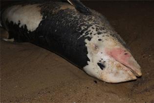Тело животного было обнаружено недалеко от воды. Нашедшие его люди полагают, что его на берег вынесло штормом. По некоторым характерным приметам очевидцы предположили, что дельфина убил не шторм, а он умер в море по какой-то другой причине.