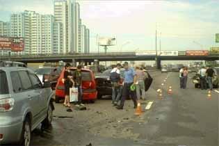 Крупное ДТП произошло на проспекте Бажана в Киеве 30 июня. Около восьми часов утра водитель автомобиля Mitsubishi Outlander, ехавший со стороны улицы Григоренко в направлении Днепровской набережной, превысил скорость, и не справившись с управлением, врезался в левом ряду в Mitsubishi Lancer, Hyundai Getz, Volkswagen Polo и Skoda Fabia, которые ехали впереди.